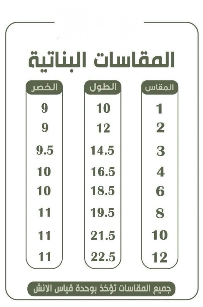 لمعرفة القياسات يرجى سحب الصوره لليمين او اليسار