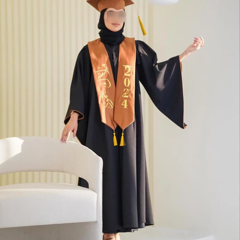 تفصيل عباية تخرج بالاسم حسب الطلب متوفر جميع المقاسات والالوان من براند زاهية سعر خاص للكميات أحدث تشكيلات عبايات تخرج لعام 2024م