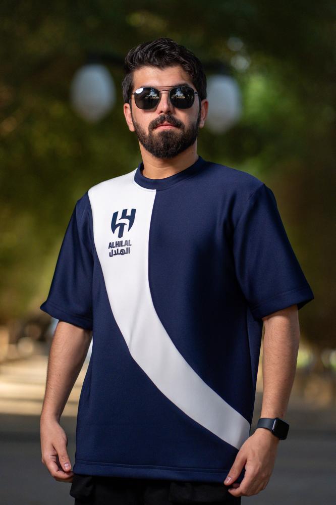تيشرت الهلال كحلي بشريط أبيض عريض