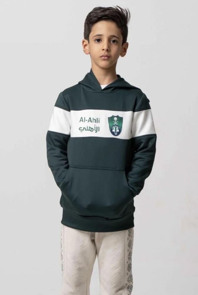 هودي نادي الاهلي بشريط أبيض وشعار النادي أطفال